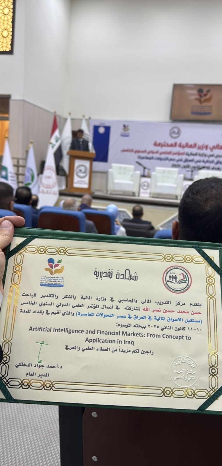 إلى جا* محافظ البنك المركزي العراقي الدكتور علي محسن العلاق