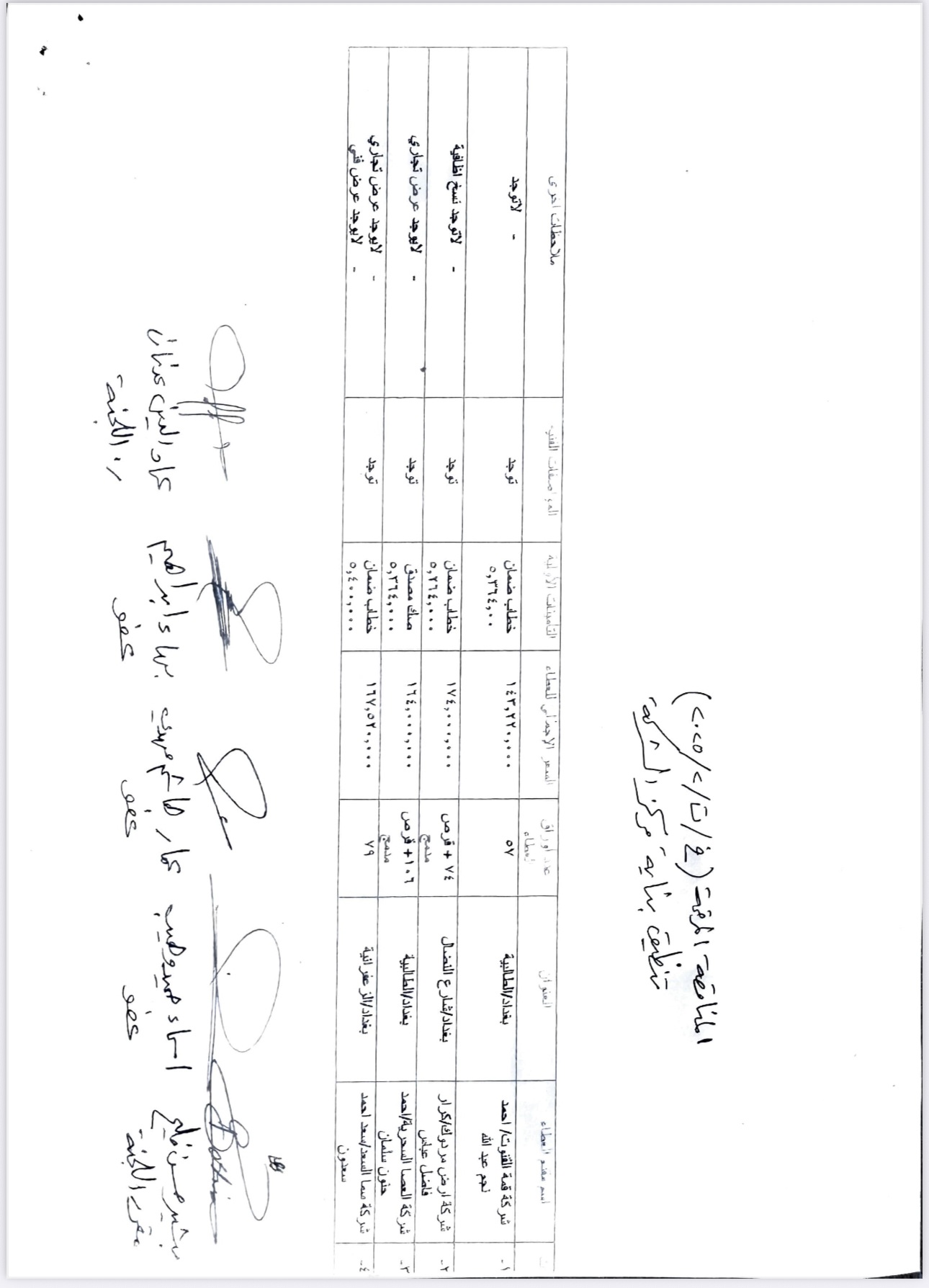 جدول مقدمي العطاءات الخاص بمناقصة تنظيف بناية مركز الشركة.