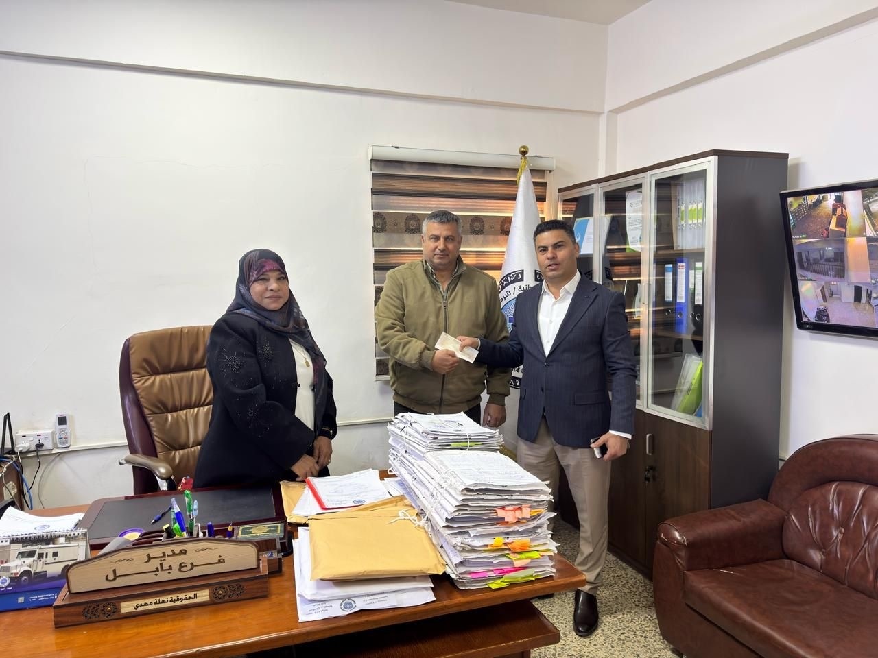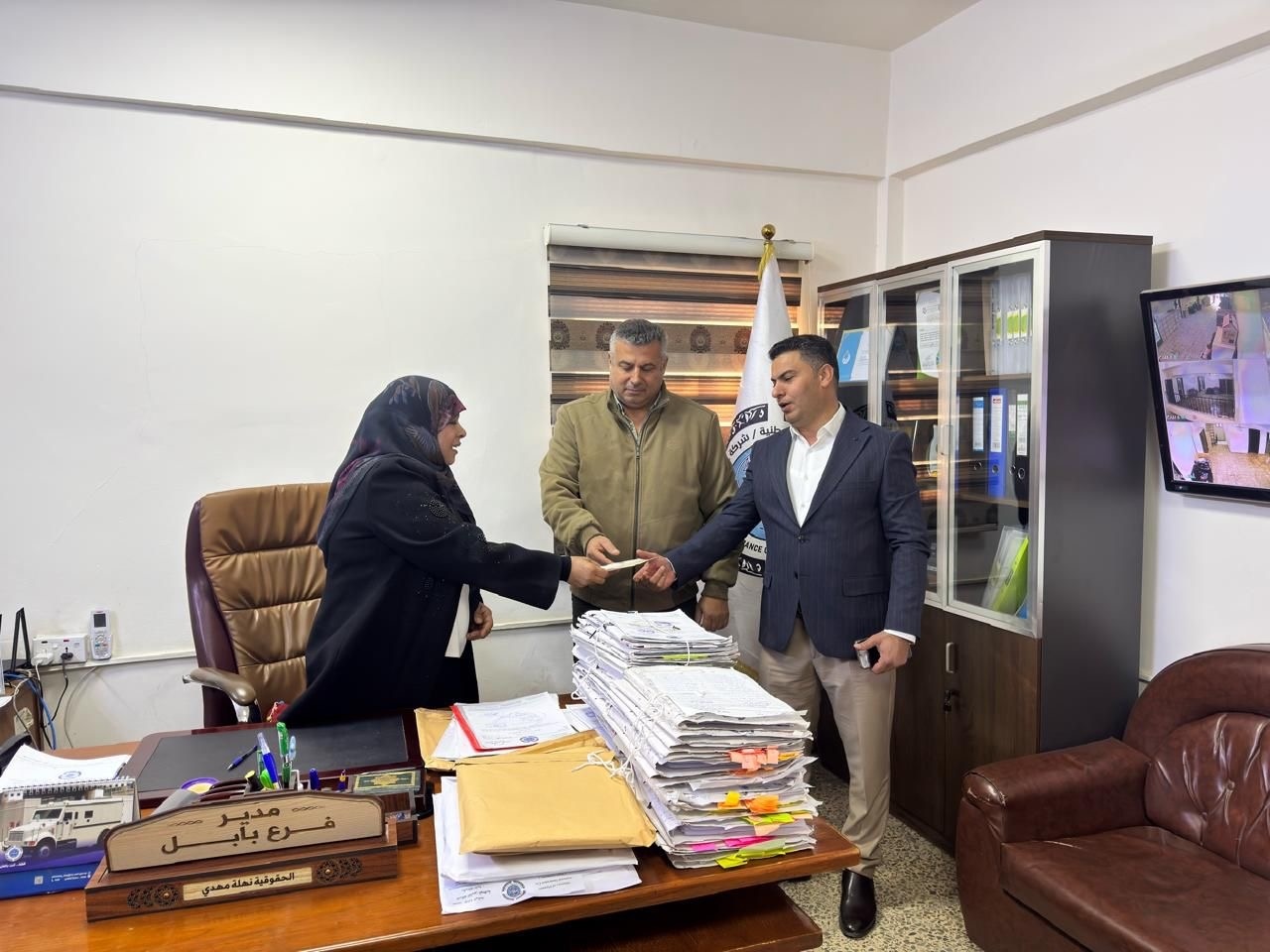 صرف صك التعويض مع الفائدة للسيد علي فاخر حسين بمناسبة انتهاء مدة وثيقة التأمين المختلط، وذلك بحضور السيدة مديرة الفرع.