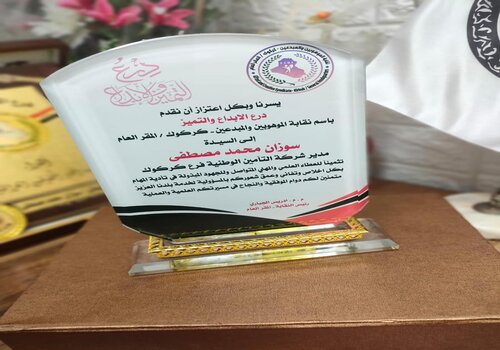 استقبلت السيدة سوزان محمد / مدير فرع كركوك /شركة التأمين الوطنية السيد ادريس الجباري رئيس نقابة الموهوبين والمبدعين كركوك/ المقر العام والوفد المرافق له جرى خلال اللقاء شرح انواع وثائق التأمين التي تمارسها الشركة وتم تكريم مديرة الفرع وعدد من الموظفين لجهودهم المبذولة في نشر الوعي التأميني في محافظة كركوك من خلال اقامة الندوات وورش العمل .