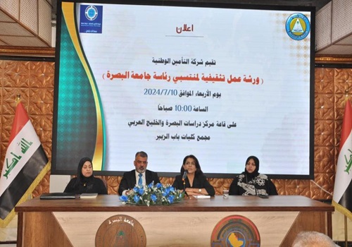 أقامت شركة التأمين الوطنية وبالتعاون مع فرع البصرة ورشة تعريفية لمنتسبي جامعة البصرة في مركز دراسات البصرة والخليج العربي في مجمع كليات ب